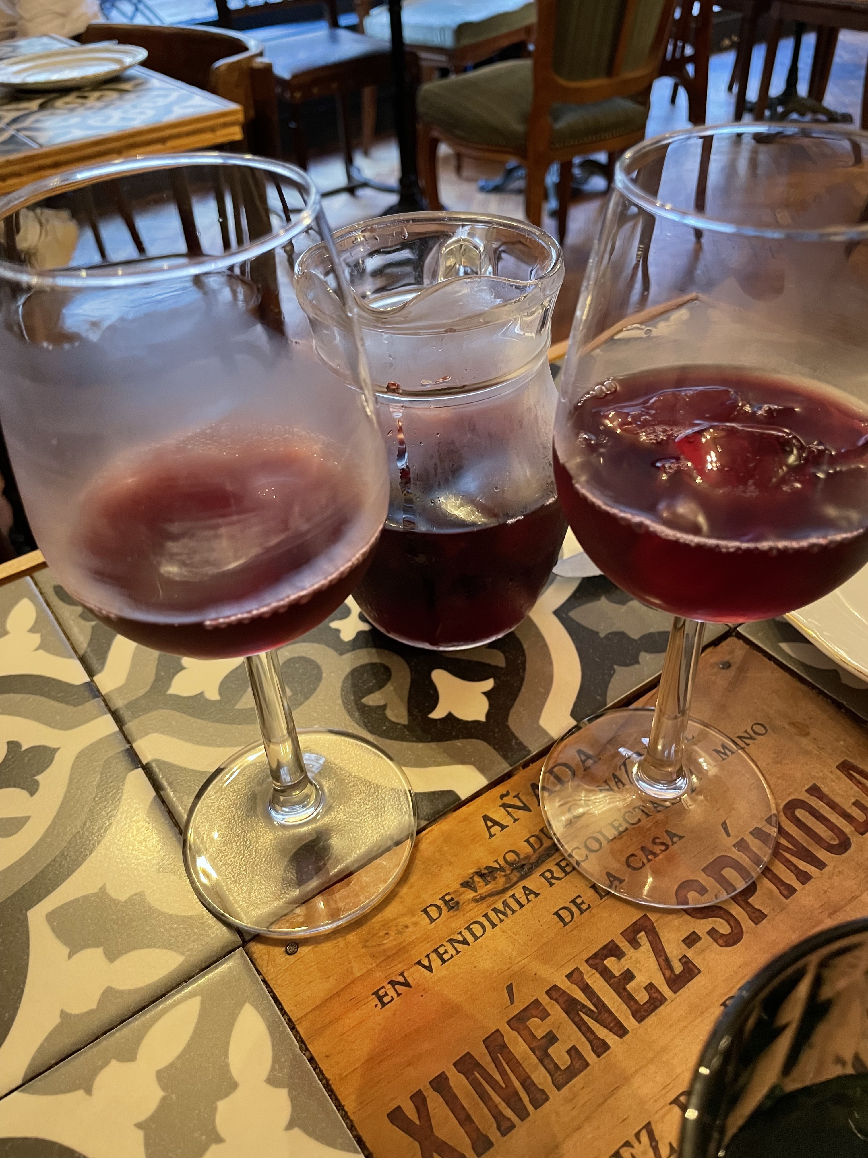Ambiance chaleureuse, décorations vintage, tapas et sangria très bons, seul le service était un peu lent